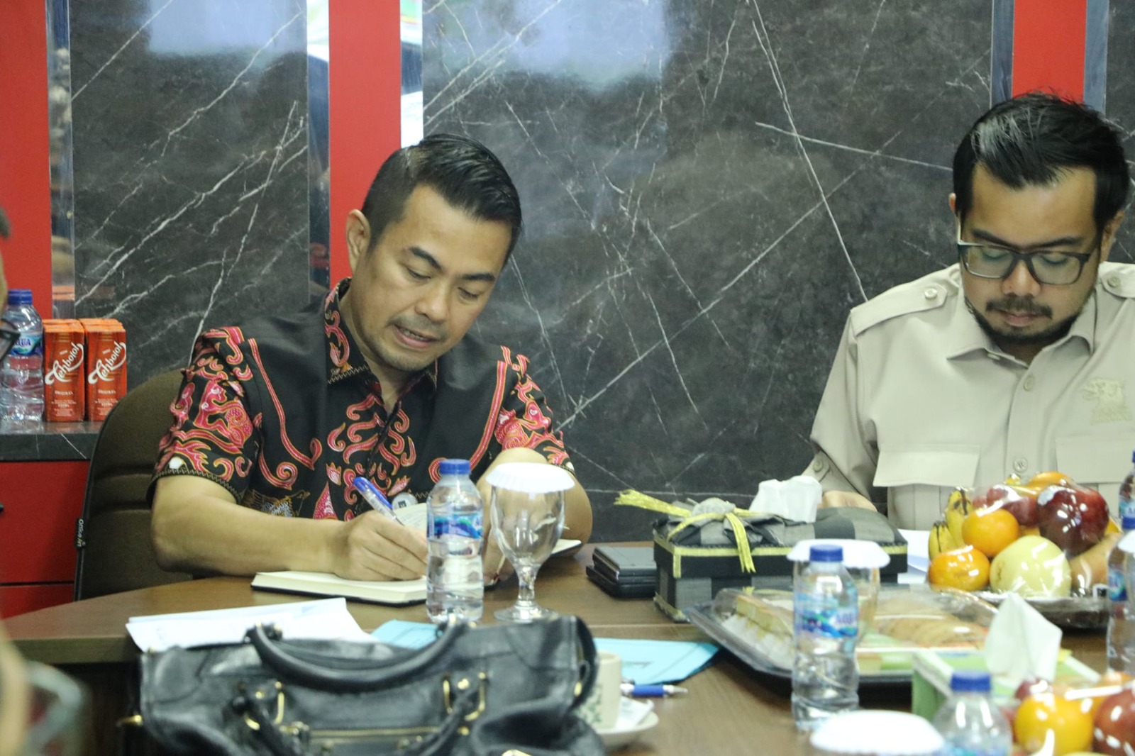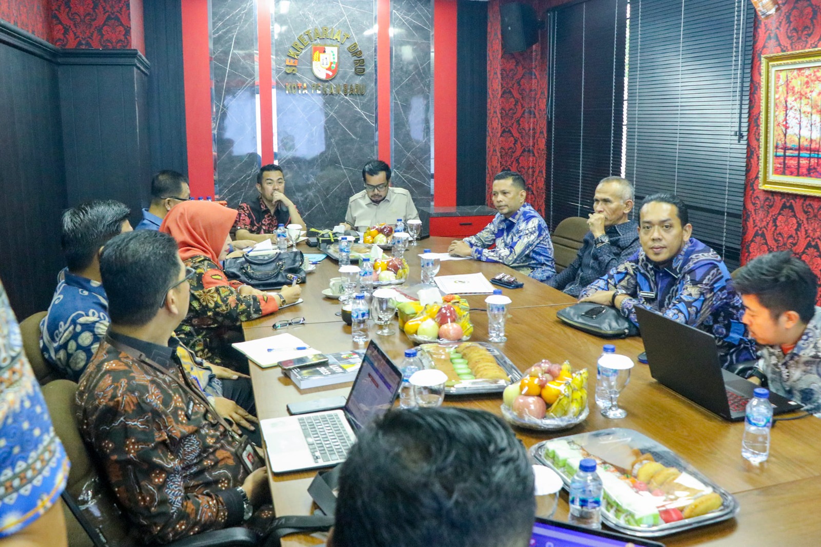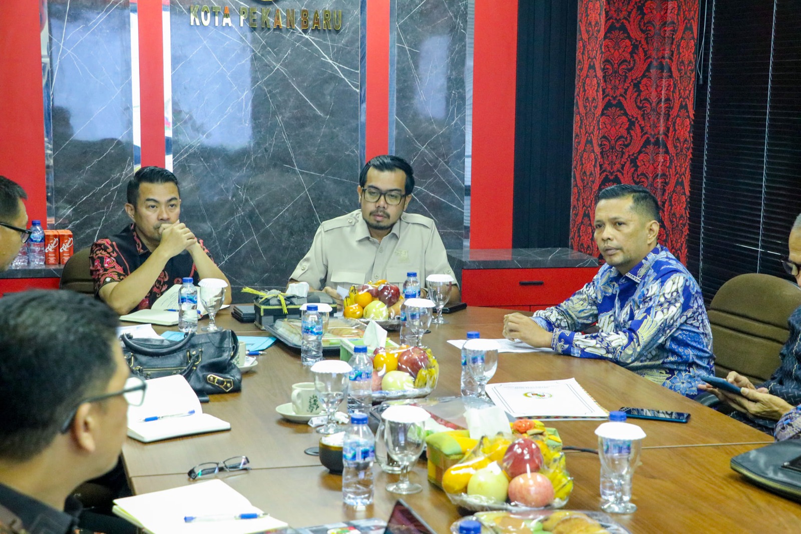 PEKANBARU - Pj Walikota Pekanbaru Risnandar Mahiwa mendatangi DPRD Kota Pekanbaru, Senin (27/5/2024). Pertemuan berlangsung di Ruang Badan Musyawarah (Banmus).
